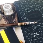 Mit Schreibfeder und silberner Airbrush-Tinte ging es schreibfreudig ans Werk.